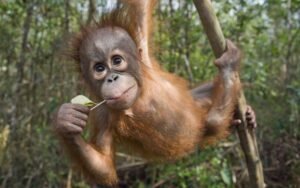 En la naturaleza, los orangutanes utilizan una variedad de herramientas sofisticadas tanto para la extracción de insectos de los huecos de los árboles así como para cosechar semillas de frutos de cáscara dura.